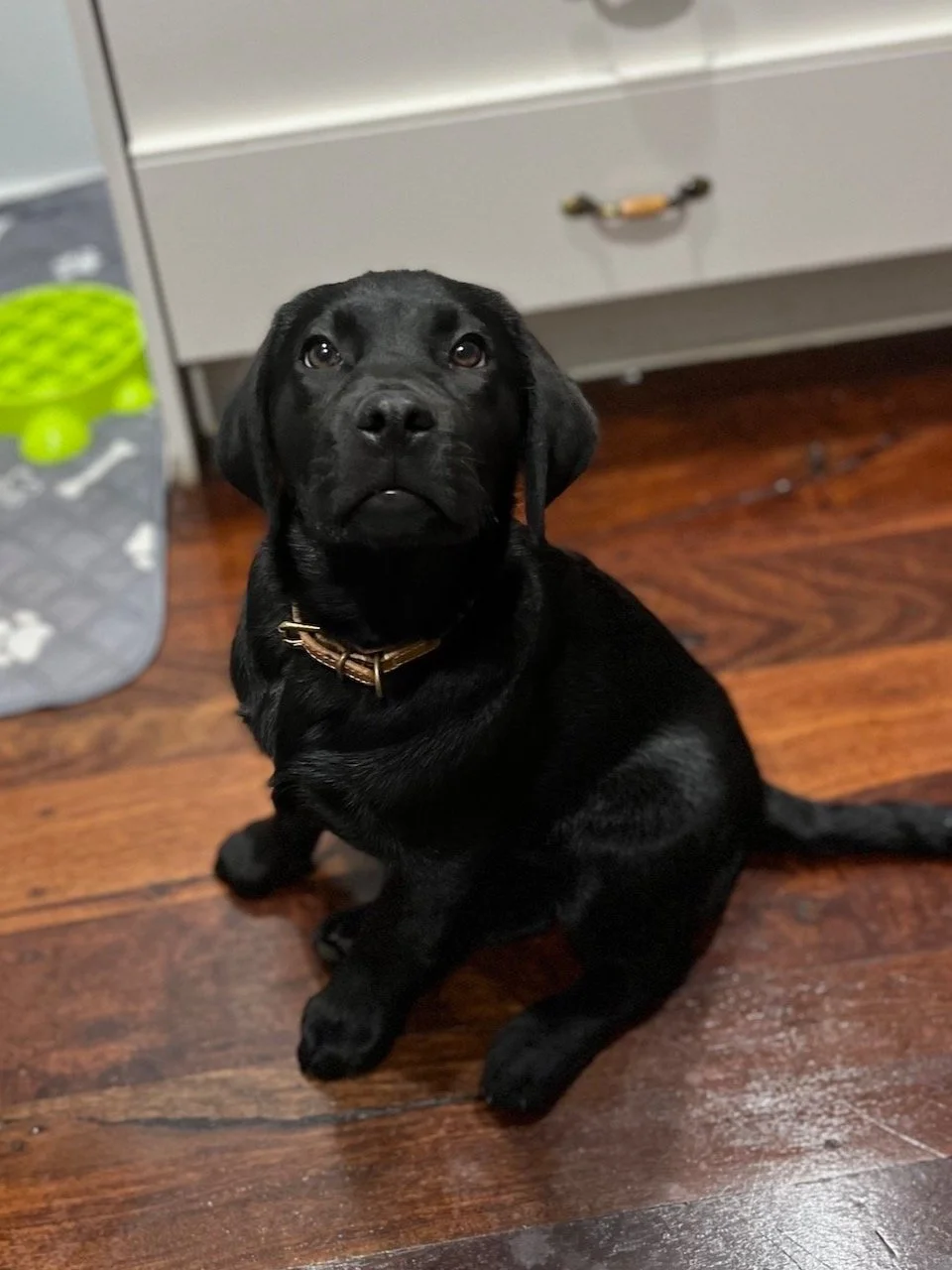 This girl is one special, smart lady. One of the easiest dogs we have worked with. She aced the toilet and crate training almost instantly. We’re very grateful to her guardian family and can not wait to see her working in her school soon. She is a medium black and comes to us via Sheffaluka Labradoodles.